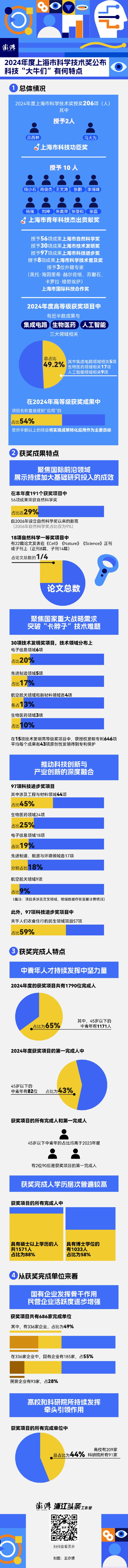 8月26日,上海2024年的科学技术奖正式宣布,共有206个个人奖项(个人)。具体而言,今年,上海科学技术元奖奖获得了两名学者Lu Xilin和Ma Dawei的奖项(Qian Xiaoshi,Xiaoshi,Xiao Junjie,Wang Wengao,Zhang Peng,Zhang Peng,Li Bofeng,li Bofeng,Yang Qiang,Liu Shenshen,Zhu Meiping)。奖项和38个奖项。 Herzog,Panshi和Colllolla Sesedes)获得了上海科学与技术合作奖。在今年授予的191项项目中,有56项成就获得了自然科学奖,该奖项占29%,与上海基础研究的投资不断增加相比,大幅增加了,这破坏了重要的独立理论研究,从而夺取了科学和技术领域的命令范围,从而有效地增强了其全球影响,从而增强了自然界的18个自然研究。在“自然”,“科学”(8份官方杂志和14个子书籍)的数量或子街区中,对土豆的总四人组的说法”,论文的叙述。国际影响力。它表明了潜在应用的价值或观点。例如,Fudan Louver和Fudan Louver Incoriality的技术转移许可证,其技术转移率是3.7亿。理论上的创新是中心特征,并且是针对工业领域的重要应用,领先的工业发展和社会进步。要多n 50中国复杂的摩天大楼,并强烈保证摩天大楼的安全性。在我国,学术马达威是一位著名的有机化学家。他在理论研究的分裂中创建了一个公寓,例如有机合成和医学化学。对该部门,独创性和领导力的显着贡献被广泛用于制药行业,并创造了巨大的社会和经济利益。 OFSDE研究领域:几乎一半的奖项 – 获得高级项目与三个主要行业有关。在获得2024年高级奖项的高级项目中,几乎一半的结果与三个主要领域有关:综合电路,生物医学科学和人工智能。此外,还有19个与新材料领域有关的要素,以及与航空航天场有关的三个元素。在赢得高级奖品2024的结果中,直接以“应用程序”的名义提及了34篇文章CH代表54%。超过一半的项目表明,主要目标是实现结果的转换和应用。奖项类别主要集中在两类中。技术发明奖和科学技术进度奖。从现场分配的角度来看,新材料,新能源,高级制造和其他部门以及三个主要行业的领域达到了含义。 30个专注于奖励项目之间主要国家战略需求的技术发明超出了“瓶颈”的技术问题,代表六个要素,在电子信息领域中为20%。它代表高级制造领域的五个要素,占17%。航空航天和新材料领域中的四篇文章占13%。它代表生物医学领域三个元素的10%。在15个高级技术发明奖项目中,有646个认证I授予了新的专利,每项成就平均受到专利保护的43项原始发明。所有15个高级技术发明奖项涵盖了国家的主要战略需求和工作,以解决至关重要的技术EMAS。 97科学技术进步奖促进了科学,技术和工业创新的深入整合,并支持多个工业部门的更新,其中包括工程和材料领域的44个文章,占45%。生物医学领域的24个元素占25%。它占电子信息字段中18个要素的19%。高级制造区,能源和环境中的17篇文章占18%。航空航天场中的九个要素代表9%(项目主要包括横截面场,在现场数据中重复计算)。此外,与食物,衣服,AC有关的人生领域有57个项目人民的商品和运输(运输,医疗,农业,食品和食品林业,地方政府工程,文化,体育,资源,环境等),占59%。从项目末尾的角度来看:中位数和年轻人的才华继续发挥脊椎。该奖项 – 2024年获得的获得奖项的项目总共有1,790人完成,其中1,171个媒介大小,年轻人占45岁以下的年轻人,占65%。在获得获得奖项的第一个奖项的获奖者中,有82名中年和45岁以下的年轻人占43%。在奖励项目中完成并完成的所有人中的百分比,45岁以下的年轻人和年轻人的比例高于2023年。90年代后的第二代是获得奖项的第一批获奖者。数据表明,获奖者的学术水平通常很高。在所有获奖者中,有1,571人拥有精通或更多的人。比例的人们为88%,拥有1.03tres,他们拥有完整的博士学位,占58%。上一个之前的两个数据基本上与2023年。在第一个完成奖励计划的人中,有186个具有硕士学位或更多的学位,占97%,而168个拥有博士学位,占88%。从完成单位的角度来看:私人公司正在增加活动,区域间链接很重要。从获得奖励单位,州公司充当脊柱,私人公司逐渐增加了活动。获得奖项的项目有686个已完成的单位,其中336个代表49%(2023年46%)。在336家公司中,有185家州公司,占55%。有93家私营公司,占28%。参与科学创新和结果变化的私人公司的活动正在逐渐增加。获胜的Companiesthus是由州公司主导的第一个完整的单位,总共在27家公司中,占公司总数的71%。研究大学和学院继续扮演主要角色。获得奖励项目的所有终止单位中有209所大学和91个科学研究机构,占44%。获得奖励项目的第一个完整单位中有105所大学和28家科学研究学院,占70%。另一个重要的特征是维多利亚项目完成单位的区域间创新链接效应的重要性。在获得奖励的项目中,有70%以上由多个单位合作完成,在其他州和城市中,有207个单位,占区域分布完成的单位总数的30%。上海的科学研究机构与其他省和城市之间的合作主要集中在三角洲扬欧,北京,北京,广州,惠克亚和山东。