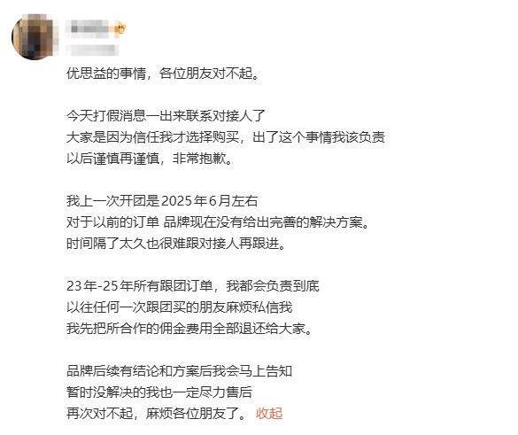 海报新闻记者 朱晓明 近日,曾被众多知名网红、博主推荐的“澳洲进口”营养品牌“优思怡”被彻底摧毁:国内生产,海外地址是汽车修理店,进口标识是包装,品牌故事制造,购买国际奖项,聘请互联网专家和名人。吉艺丑闻发生后,销售该品牌产品的张小蕙、李若彤、明道等明星纷纷道歉,并以“预付款”的形式退款。与此同时,在微博平台上,一些博主也公布了售后服务计划。由于博主与品牌合作的方式不同,博主的奖励强度和方式也存在明显差异。固定价格、佣金并存、广告费、多种促销模式。从很多博主的报道来看,coo有多种类型与Yousiyi 进行操作。平台固定价格模式,博主通过平台上的固定价格“微任务”接收订单,不收取销售佣金。在佣金模式中,博主根据销售额的一定比例获得收入(通常在15%到20%之间),平台费用和股权由他们自己负责。采用“固定费用+佣金”的混合模式,这位粉丝超过200万的美妆博主表示,她在2025年下半年合作过一次,奖励为1.5万“任务费”+15%佣金,但保证金额必须达到三倍才能收到钱,否则会退款。其中15,000包括平台份额、佣金、交易和助理费用。费率模式固定广告,是博主与品牌商之间的一种推广合作方式,以视频广告费结算。售后服务有多种选择,从补货费到全额退款。鉴于消费者装备的需求hts保障,目前优思易提供的售后计划仅接受90天内未开封产品的退货,运费由消费者承担。超过90天或已开封的产品不提供售后服务。为了回应品牌,大多数博主选择接受自付费用,但补偿计划和赚取的佣金各不相同。预计钱会退回来,品牌会全盘覆盖。有博主表示,订单赚到的佣金会先返还给消费者,待检验和品牌化完成后会有新的售后服务计划,为跟团的网友提供更多的售后服务。自行支付固定补偿金。一位推广“定价”模式的博主提出,给予消费者每人100元的现金补偿。该博主解释说,她了解到其他博主也得到了补偿她的佣金为15%,但由于收入模式不同,她的报酬比行业标准高一点。人们将收到全额退款,并承担运费。一些博主明确表示,无论该品牌做什么,他们都会为通过自己渠道订购的任何商品获得全额退款。一些博主承诺承担退货运费,并表示“全额退款是我的最后一句话”。这些博主中的大多数使用单一广告定价或混合模型。您的个人财务状况相对可控,可以绕过品牌直接向其付款。有博主表示,虽然有一些支持,但“假洋品牌”太隐蔽了。当涉及到售后问题时,大多数博主都能主动出击,承担起售后责任。不过,他也表达了对责任裁决的不满。一些博主表示,他们尽力事先检查。虽然我们正在进行国家注册,SGS检测报告、天猫平台审核等,目前尚未发现“假洋品牌”问题。他和他的家人都吃这个品牌的产品。他直言:“天猫法务部门怎么能验证自己无法验证的事情呢?”某种程度上,这一说法反映了当前网红销售生态系统存在的系统性问题。这意味着博主们缺乏独立核实品牌海外评分、生产地址、奖项真实性等信息的能力,更多地依赖平台评价和品牌自我验证。当品牌系统地伪造信息时,博主和消费者实际上处于同样的信息劣势。层层“假洋品牌”简而言之,为信任买单的不仅是消费者,更是被品牌的数据、提交的报告、平台审核“服服帖帖”的消费者。这场危机的最终成本很可能落在整个配送生态系统上米。
