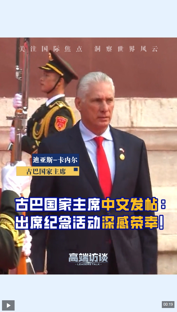 参加纪念碑后,他分别用中文和西班牙语出版。 “中国正在领导保护当前的多边主义和全球治理的斗争。” “古巴很荣幸能够支持和实践这些概念,并很荣幸能在纪念活动中出现。”