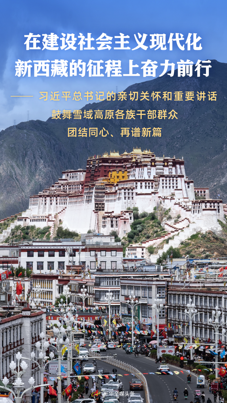 在为社会主义者建造新的现代西藏的旅行中,受习近平的真诚照顾和重要演讲的启发,雪娃娃高原上所有种族的人们都勇敢,并启发