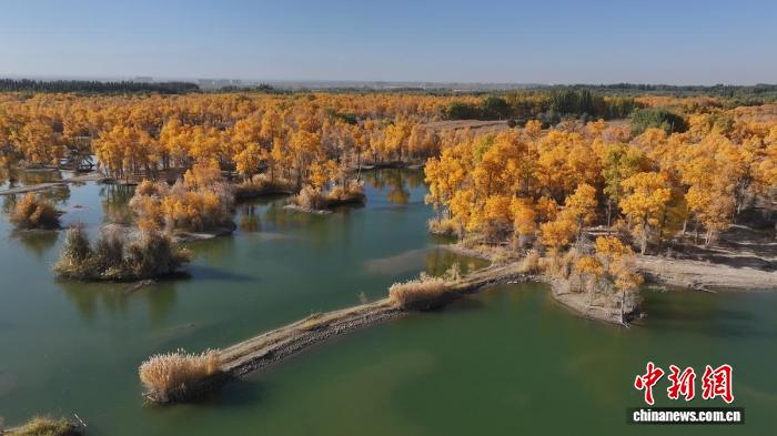 中新社新疆民丰10月19日电 (陶树科)金秋十月,塔克拉玛干沙漠边缘的胡杨林迎来了一年中最绚丽多彩的时节。 18日,“和田追胡杨”系列文化旅游活动在新疆民丰县启动,来自世界各地的游客纷纷涌入这片金色的胡杨林,享受秋天的视觉与精神盛宴。民丰县的胡杨林已经变黄。图片提供:民丰县综合媒体中心。民丰县文化体育广电旅游办公室主任阿尔祖古力·阿卜杜瓦里介绍,今年民丰县胡杨季将围绕“文化旅游+生态+交流”三大核心,推出越野跑尼雅遗址、后河坝“沙海浪”体验区、胡杨林等项目。一次绘画活动以幼发拉底森林为主题,让游客充分享受沙漠文化的无限魅力。他说,今年胡杨观赏黄金期从10月17日开始,一直持续到11月4日。为方便游客登记,铁路沿线设置了多个观景板。为帮助游客体验民丰多样的自然景观,文化和旅游局精心设计了两条具有代表性的旅游线路。此外,当地还新增了两个免费房车露营地,配备充电设施和旅游厕所,增加了民宿容量,极大地鼓励了自驾游客。 (或更多)
