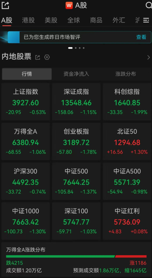 第二天,A股三大指数低开后回落。截至中午收盘,上证指数跌0.53%,深成指跌1.15%,创业板指跌1.78%。该市午盘销售额为 1.2 万亿美元,超过 4,200 只股票下跌。分板块来看,云计算、人工智能应用、计算机硬件、太阳能、半导体、智能电网、Yuki机器人概念股跌幅居前,航运、油气、锂矿等板块则逆势上涨。 (中新经纬微信公众号)